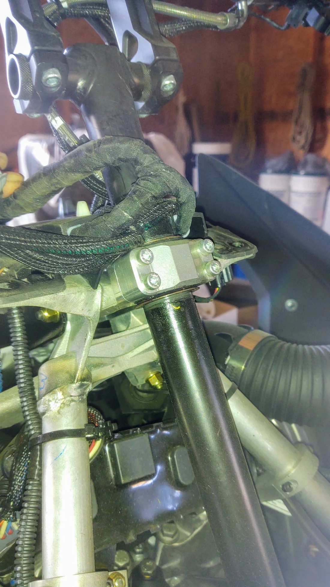 Installation requires that the console immediately in front of the steering post be notched to allow clearance for the new position. Also on naturally aspirated sleds the airbox will need to be heated add reformed to provide adequate clearance.